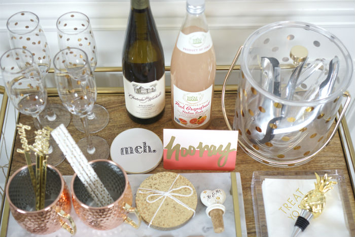 Coffee Cart: I also love the idea of using it as a coffee cart if cocktails aren’t your thing or if you’re underage in college. I would have been the hostess with the mostest during my studying days if I busted out a coffee cart for my girlfriends!