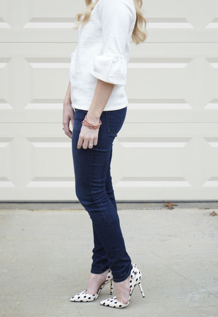 I adore this top from Banana Republic because it’s really stretchy and I love a feminine sleeve detail. I also linked a similar top in the widget that I purchased because I just love the detail so much! Both are pretty, but if you just want one or the other I would recommend the pink one because it’s a little longer and the material is a bit softer.
