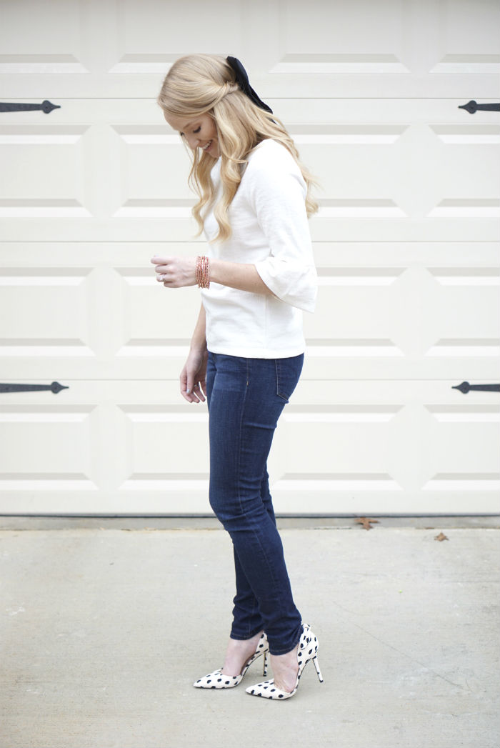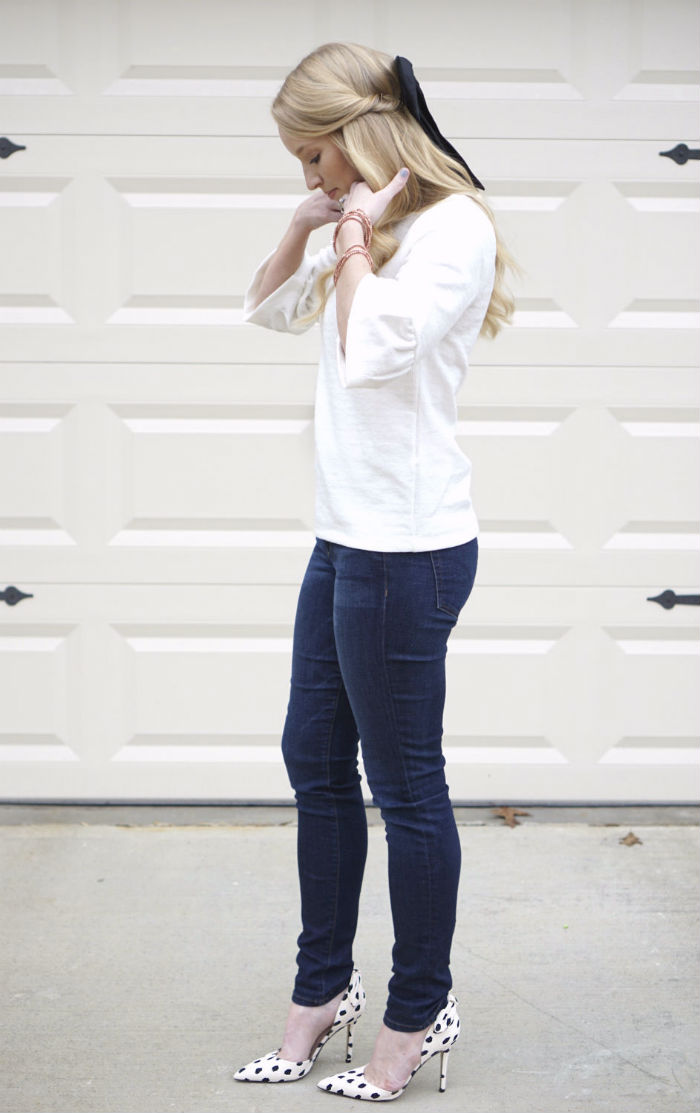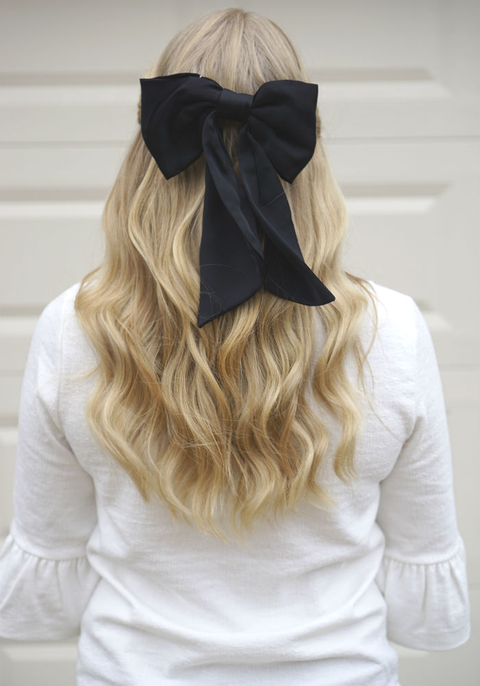 I twisted my hair back into this big bow which can be used in your hair or pinned into your skirt, which I’m planning to do soon! I wanted to tie in the black and white together so I paired it with these Kate Spade Peggy heels that also have a bow detail. I found these at Nordstrom Rack last year, so I’m linking other shoes that I would wear with the look if I had them (aka on my wishlist!).