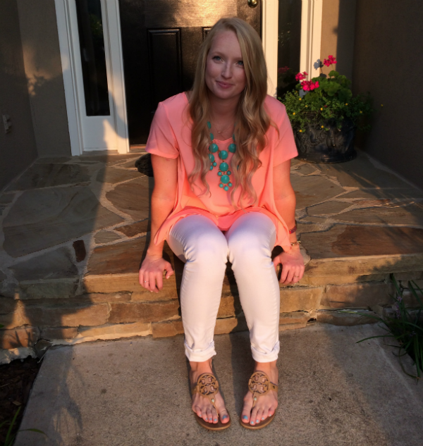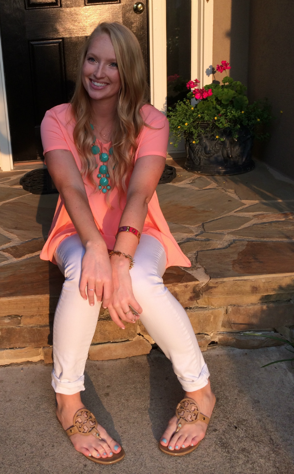Now I haven’t worn this bubble necklace in easily a year and a half because they were so overdone, but it’s exactly what this outfit needed! I love a good peach and turquoise combo, and I’m happy I never got rid of it. I’m also wearing a little rose gold arrow necklace I found at the Atlanta Mart, but in the widget below is a gold version that I love!