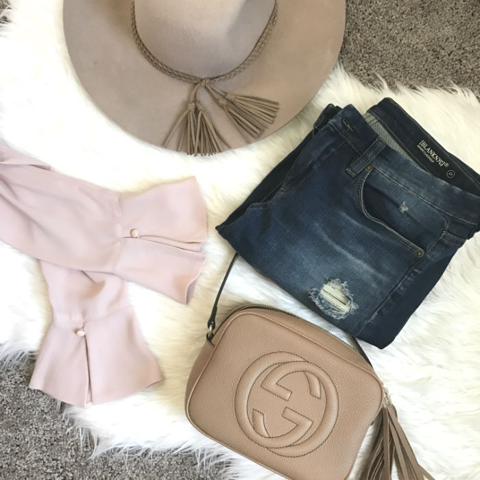 top . jeans . similar booties . similar bag