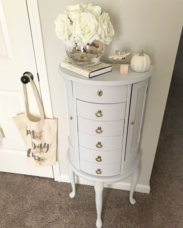 While we were on out honeymoon my mom painted her old jewelry check in chalk paint and polished off the knobs for me and I’m in love with how it turned out! It’s been the perfect addition to this little wall space in my office, and I love switching up the top decor.