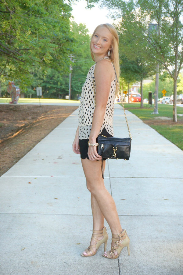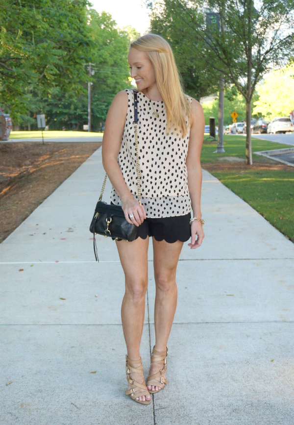 Date night on Main Street Woodstock is always a good time (after you find parking that is). I always gravitate towards spots/dots and this top from the Kate Spade Outlet was no exception. I paired it with a pair of black scalloped shorts then wore these edgy heels to make a statement. I’m not gonna lie.. I changed into sandals to walk around after dinner. My feet have a pretty small window when it comes to these bad boys.