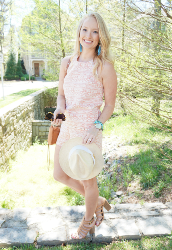 They key to finding a cute romper is all about the fit in the bottoms..you want to avoid diaper butt. I’ve found the rompers that end up making it home with me are more fitted on the bottom half. This outfit is actually a two-piece set made to mix and match, but today I wore them together. I love the little dot detail on the bottom of the shirt. I plan to wear these shorts with chambray and a white off-the shoulder top (like this.. too cute!). Also.. this Target romper is definitely worth taking a look at.. I mean hello scallops. My shoes are sold out from here, but this is a summer sandal I’m dying to get in gold!