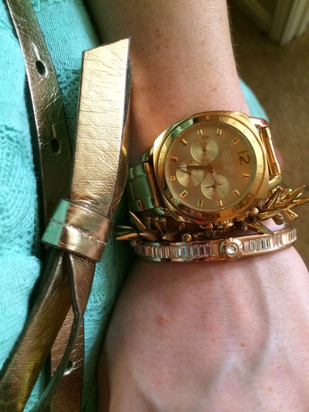 Watch: COACH (sign up for their emails, they’re always running a sale for their customers!) // Spike Bracelet: Stella & Dot // Bangle: Henri Bendel (rose gold) and wanting these