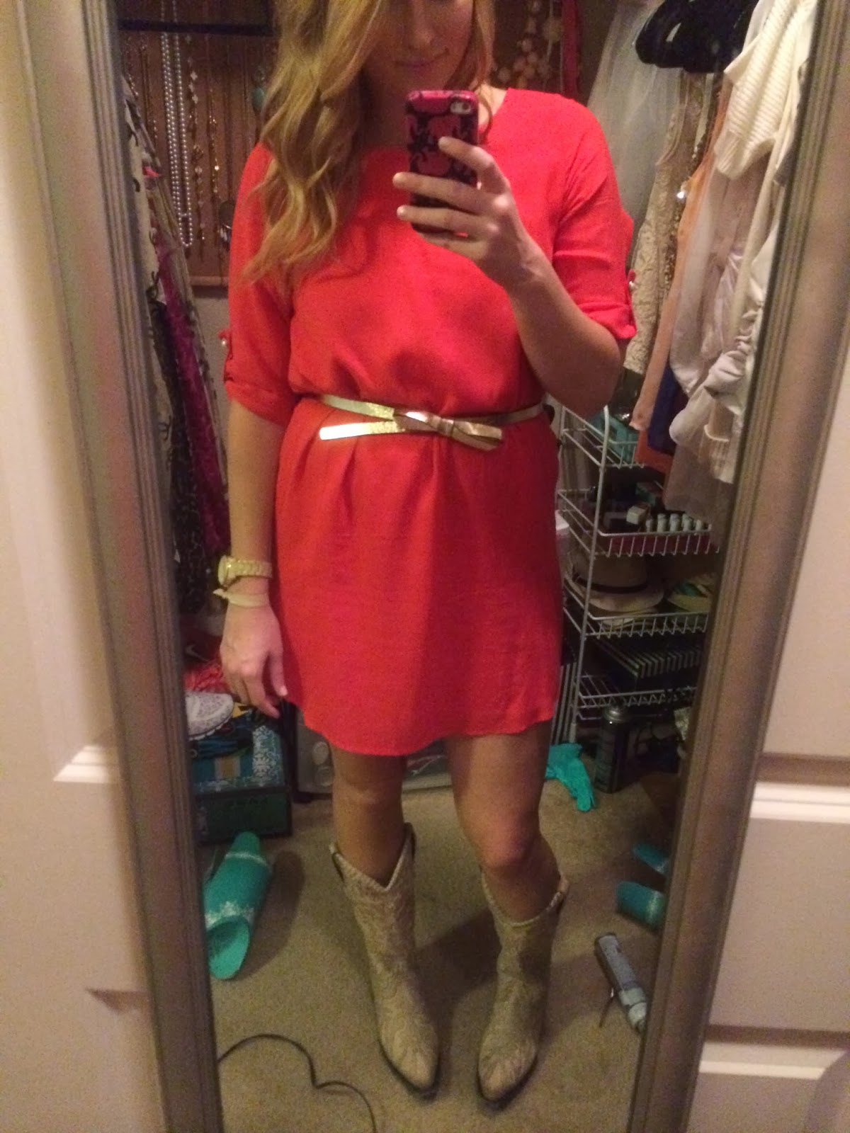 Dress: Old Navy (old) // Belt: J. Crew Outlet // Boots: Frye // Watch: MK // Bracelet: Stella & Dot